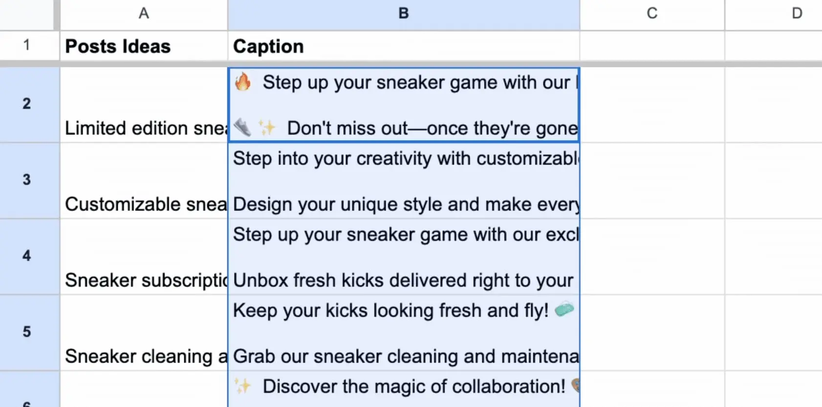 Use the Google Sheets AI formulas seamlessly with a simple drag-and-drop, quickly replicating AI-generated content across cells and efficiently scaling your work.